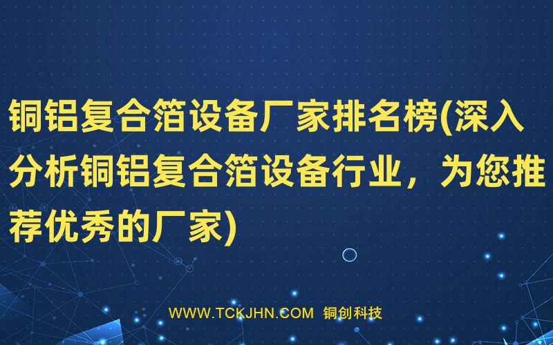 正文:銅鋁復(fù)合箔設(shè)備是一種將銅板和鋁板通過(guò)特殊工藝復(fù)合而成的一種新型材料,被廣泛應(yīng)用于電子、航空航天、汽車(chē)等領(lǐng)域。在市場(chǎng)需求不斷增加的背景下,銅鋁復(fù)合箔設(shè)備廠家也呈現(xiàn)出蓬勃發(fā)展的勢(shì)頭。然而,目前市場(chǎng)上的銅鋁復(fù)合箔設(shè)備廠家琳瑯滿目,消費(fèi)者不知如何選擇。本文將通過(guò)對(duì)銅鋁復(fù)合箔設(shè)備行業(yè)的深入分析,為您推薦幾家優(yōu)秀的廠家。