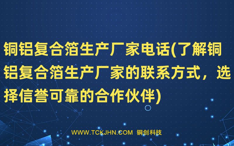 銅鋁復合箔生產(chǎn)廠家電話是選擇合適的合作伙伴的重要參考因素。通過了解廠家的信譽和實力,選擇可靠的生產(chǎn)廠家,您可以獲得高質(zhì)量的銅鋁復合箔產(chǎn)品,并建立長期穩(wěn)定的合作關(guān)系。希望以上信息對您有所幫助!